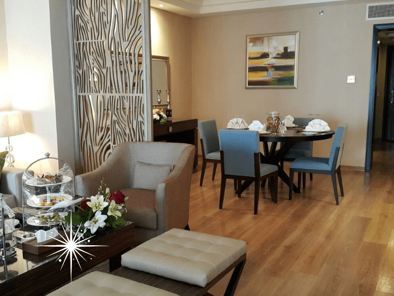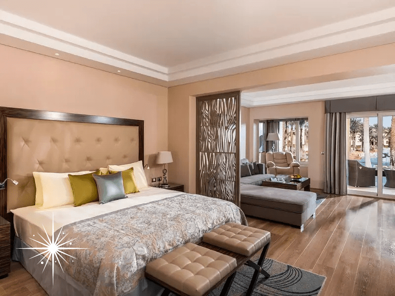 The Executive Suite at Rixos Sharm Seagate epitomises luxury with its elegant décor and expansive 80m² space, designed to provide an exceptional holiday experience. Featuring a sumptuous bedroom with a king-size bed, the suite ensures ultimate comfort for guests seeking relaxation. With the addition of two bathrooms, privacy and convenience are prioritised, making it an ideal choice for families or couples alike. The living area features a large TV, perfect for unwinding after a day of exploring the resort or taking in the stunning local sights.