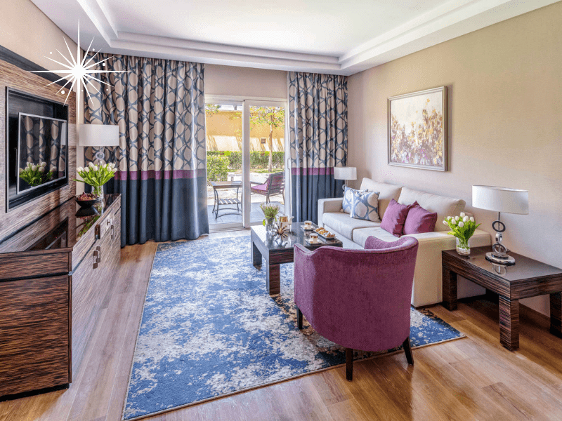 The Superior Suite Aqua at the Rixos Seagate Aqua side in Sharm El-Sheikh is a luxurious retreat situated on the second line, offering a serene view of the garden. Spanning 88 m² (947 sq ft), the suite features a King bedroom, a Twin room, and a spacious living area, accommodating up to six guests.